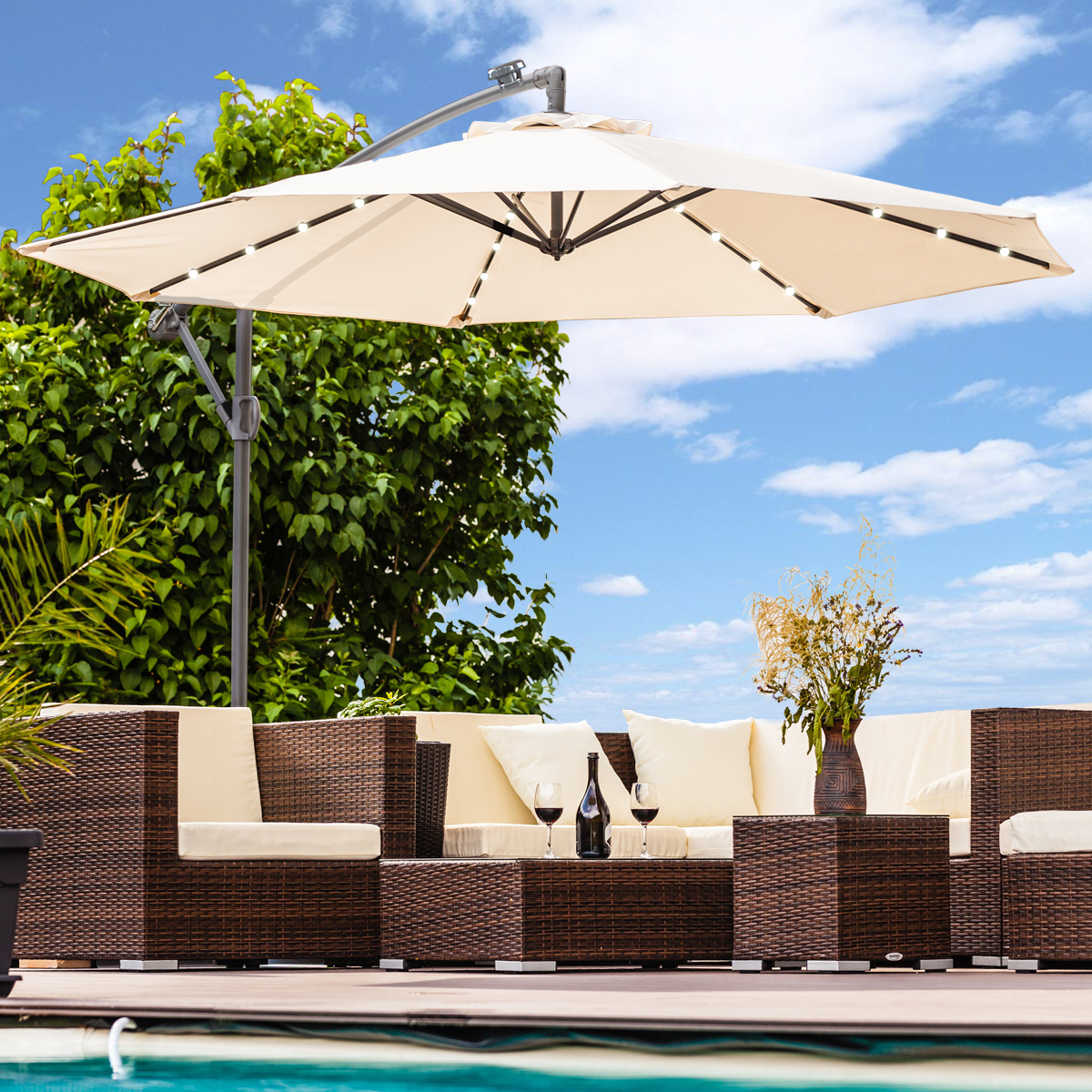 Závěsný slunečník s LED solárním osvětlením BestBerg BBHU-11 / 300 cm / béžová