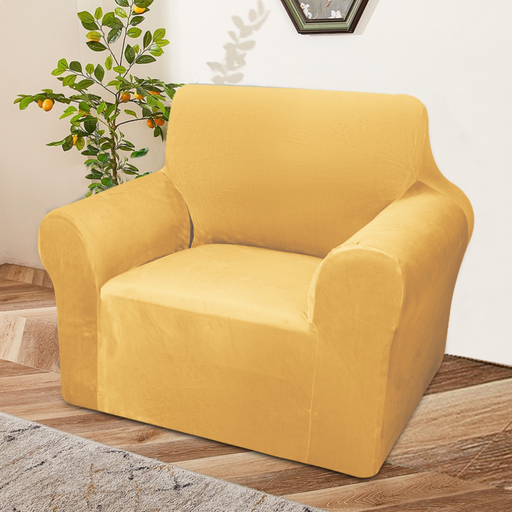 Elastický plyšový potah na křeslo BestBerg / žlutá