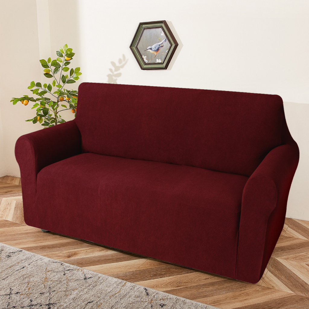 Elastický žakárový potah na dvoumístnou pohovku BestBerg / vínová