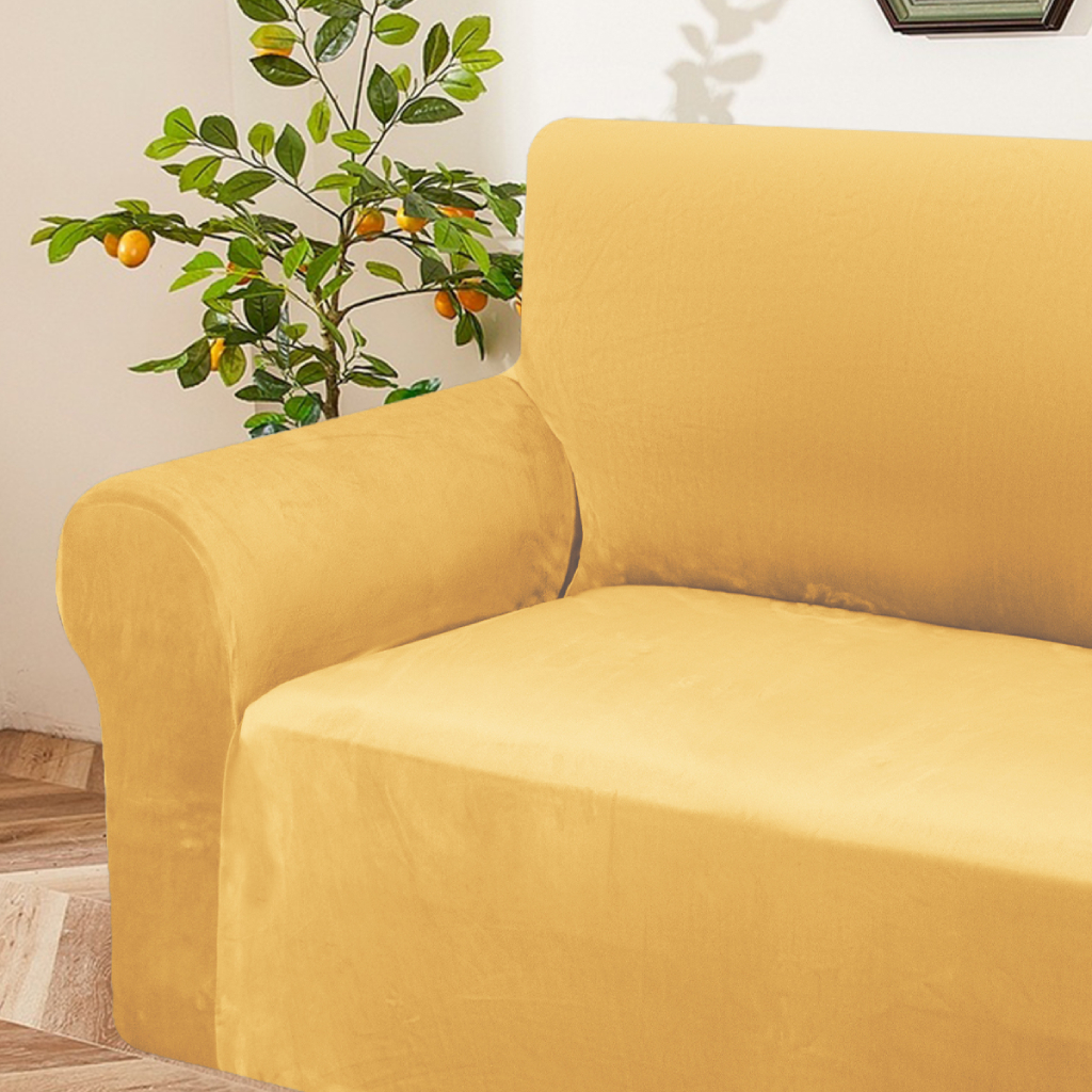 Elastický plyšový potah na trojmístnou pohovku BestBerg / žlutá