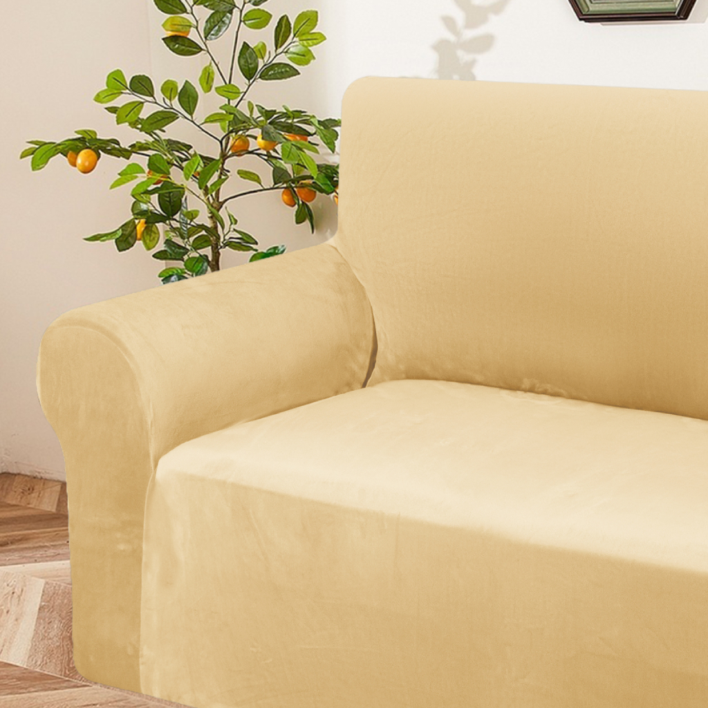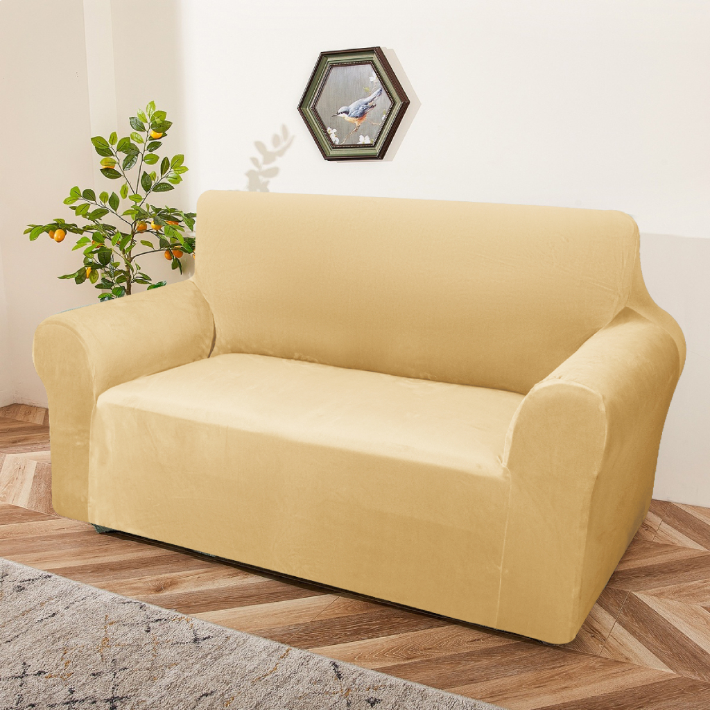 Elastický plyšový potah na dvoumístnou pohovku BestBerg / světle žlutá
