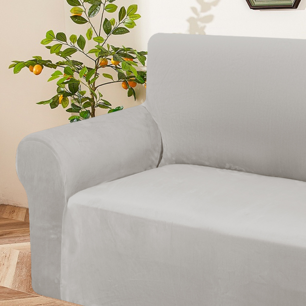 Elastický plyšový potah na dvoumístnou pohovku BestBerg / světle šedá