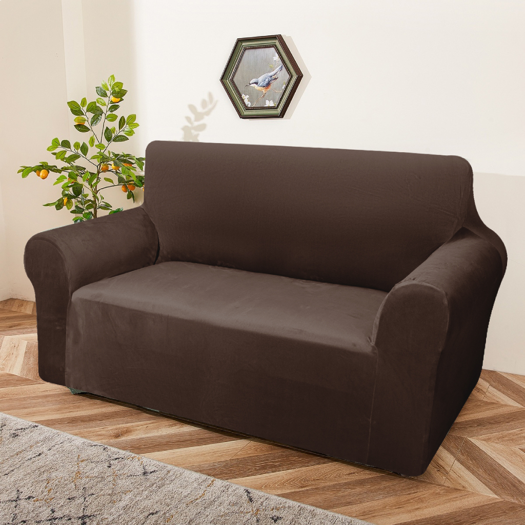 Elastický plyšový potah na dvoumístnou pohovku BestBerg / čokoládová