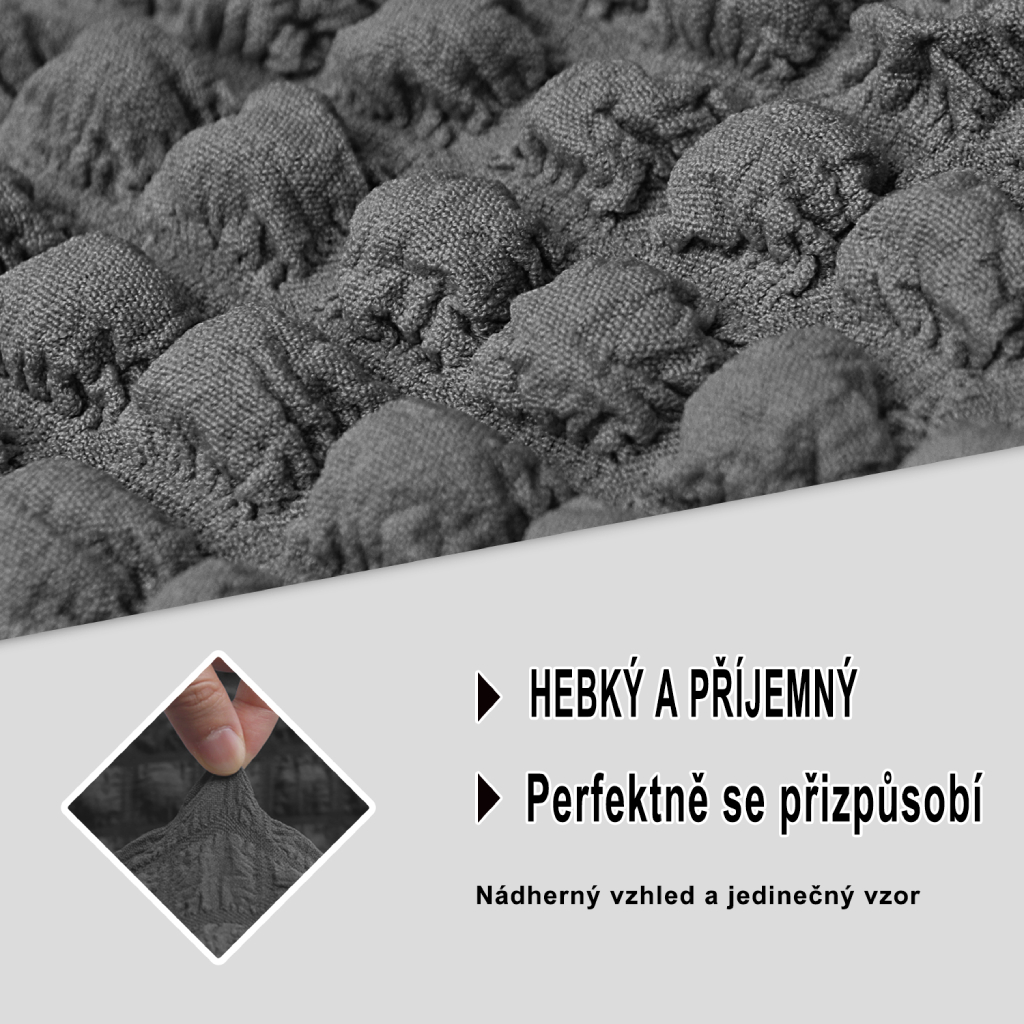 | Jakým způsobem potah zabrání sklouzávání? | Díky elastickým okrajům a správnému umístění potah pevně drží a neklouže. |
