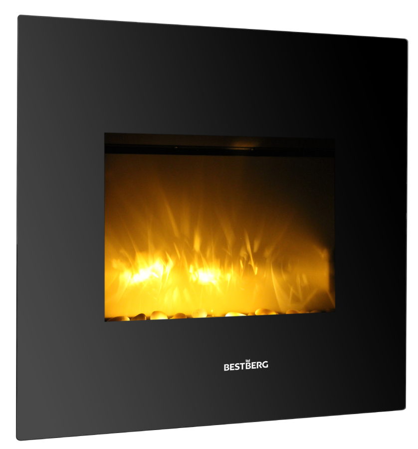 - Skleněný nástěnný elektrický krb s imitací ohně BestBerg BBFP-26 / 1800 W / černá