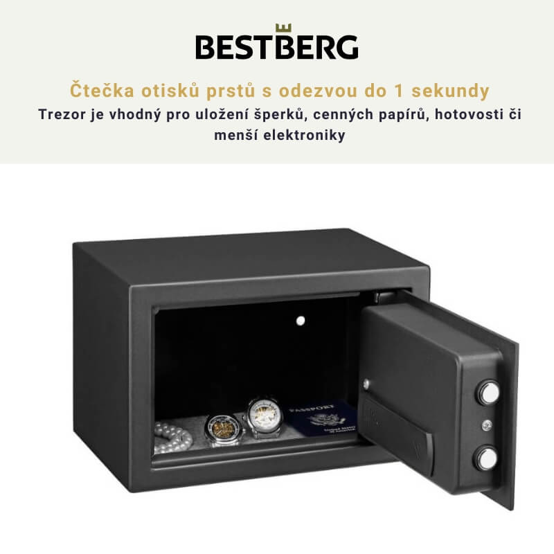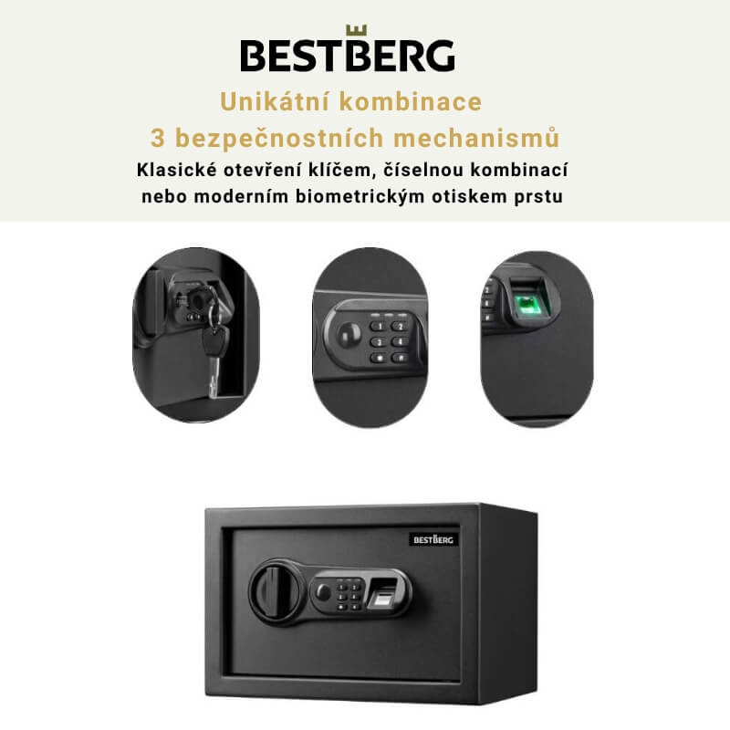 Technické parametryDigitální trezor na otisk prstu BestBerg BBSB-1F / 20 x 31 x 20 cm / černá