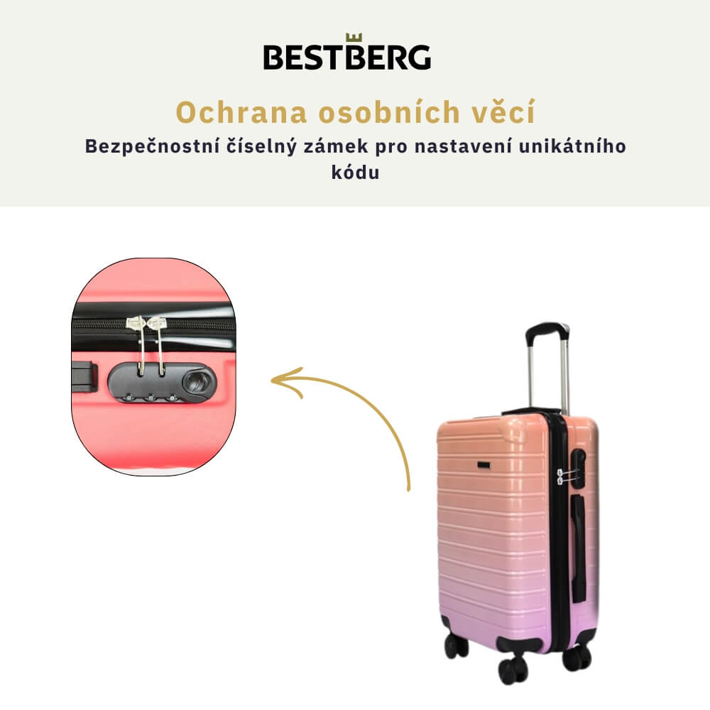 Ochrana osobních věcí s bezpečnostním zámkemBezpečnostní číselný zámek na cestovních kufrech BestBerg je klíčovým prvkem pro ochranu vašich věcí během cestování.