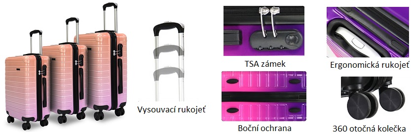 | Jaký je materiál kufrů? | Kufry jsou vyrobeny z odolného ABS plastu, který je lehký a nárazuvzdorný. |