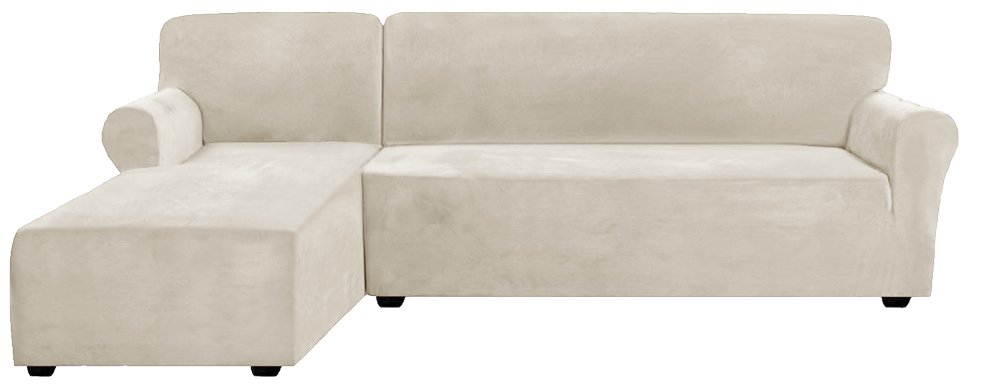 Napínací elastický plyšový potah na trojmístnou rohovou pohovku BestBerg / levá / krémová