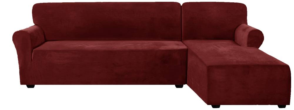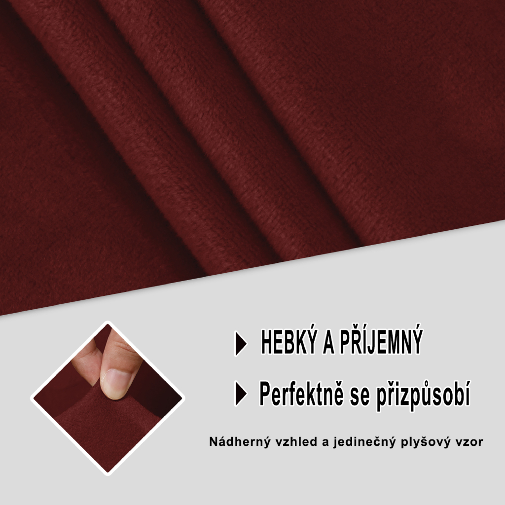 Napínací elastický plyšový potah na trojmístnou rohovou pohovku BestBerg / pravá / vínová