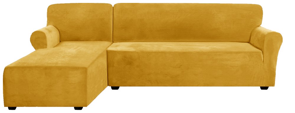 Napínací elastický plyšový potah na trojmístnou rohovou pohovku BestBerg / levá / žlutá