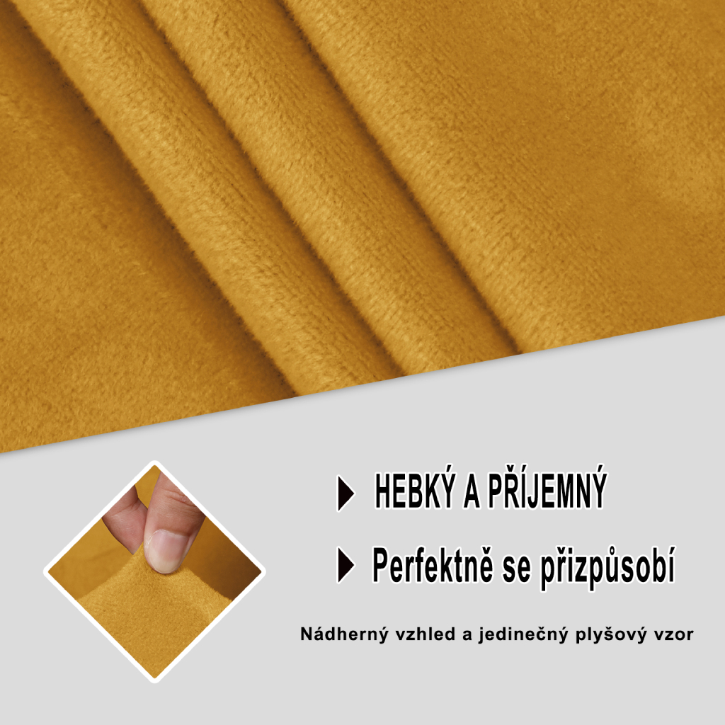 Napínací elastický plyšový potah na trojmístnou rohovou pohovku BestBerg / pravá / žlutá
