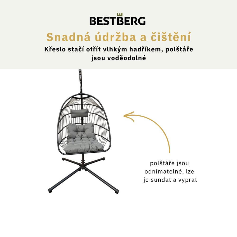 Stylové závěsné křeslo pro dokonalý relaxUžijte si pohodlí a eleganci v jednom – závěsné křeslo BestBerg BBHC-30 je skvělou volbou. Pro každého, kdo si chce vychutnat okamžiky klidu a pohody. V interiéru i na zahradě.