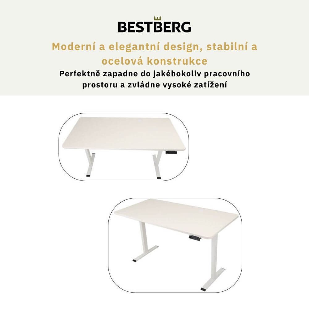 Výškově nastavitelný elektrický stůl BestBerg BBAT-16WW / rozměr 160x80 cm / výška 70-114 cm / bílá