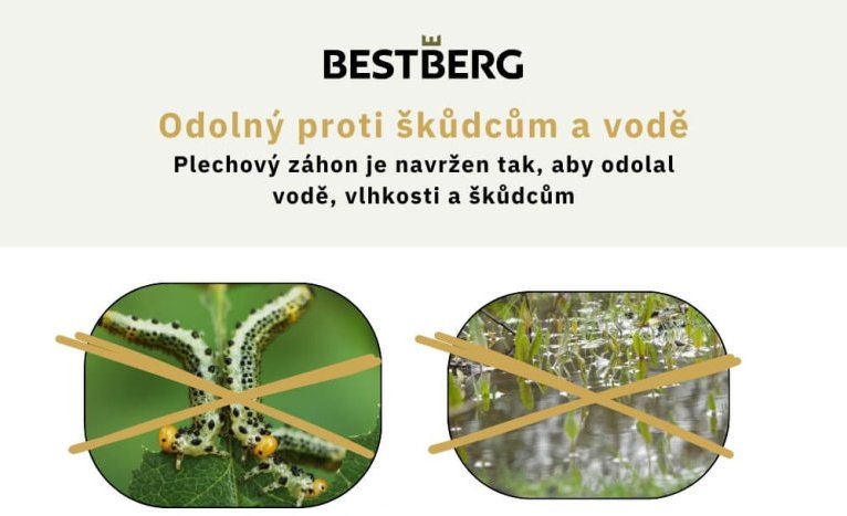 Záhon odolný proti škůdcům a voděJednou z největších výhod vyvýšeného záhonu BestBerg je jeho odolnost. Plechový materiál, ze kterého je záhon vyroben, je nejen odolný vůči vodě. Tvoří také bariéru proti škůdcům z půdy.