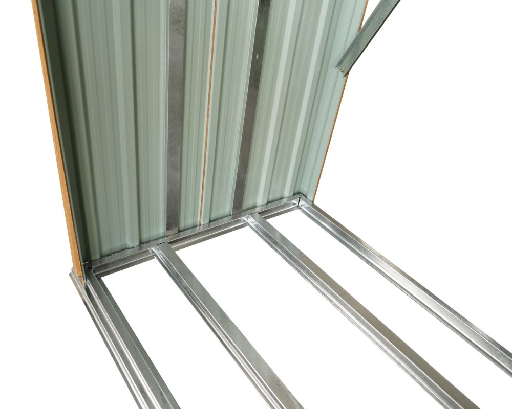 Podlaha není součástí balení. Obvykle se používají k vytvoření pevné a odolné podlahy do zahradního domku: beton, pevné kachle, dlažba nebo dřevo. Volba materiálu závisí na požadavcích na pevnost, trvanlivost a údržbu, stejně jako na rozpočtu a estetických preferencích.