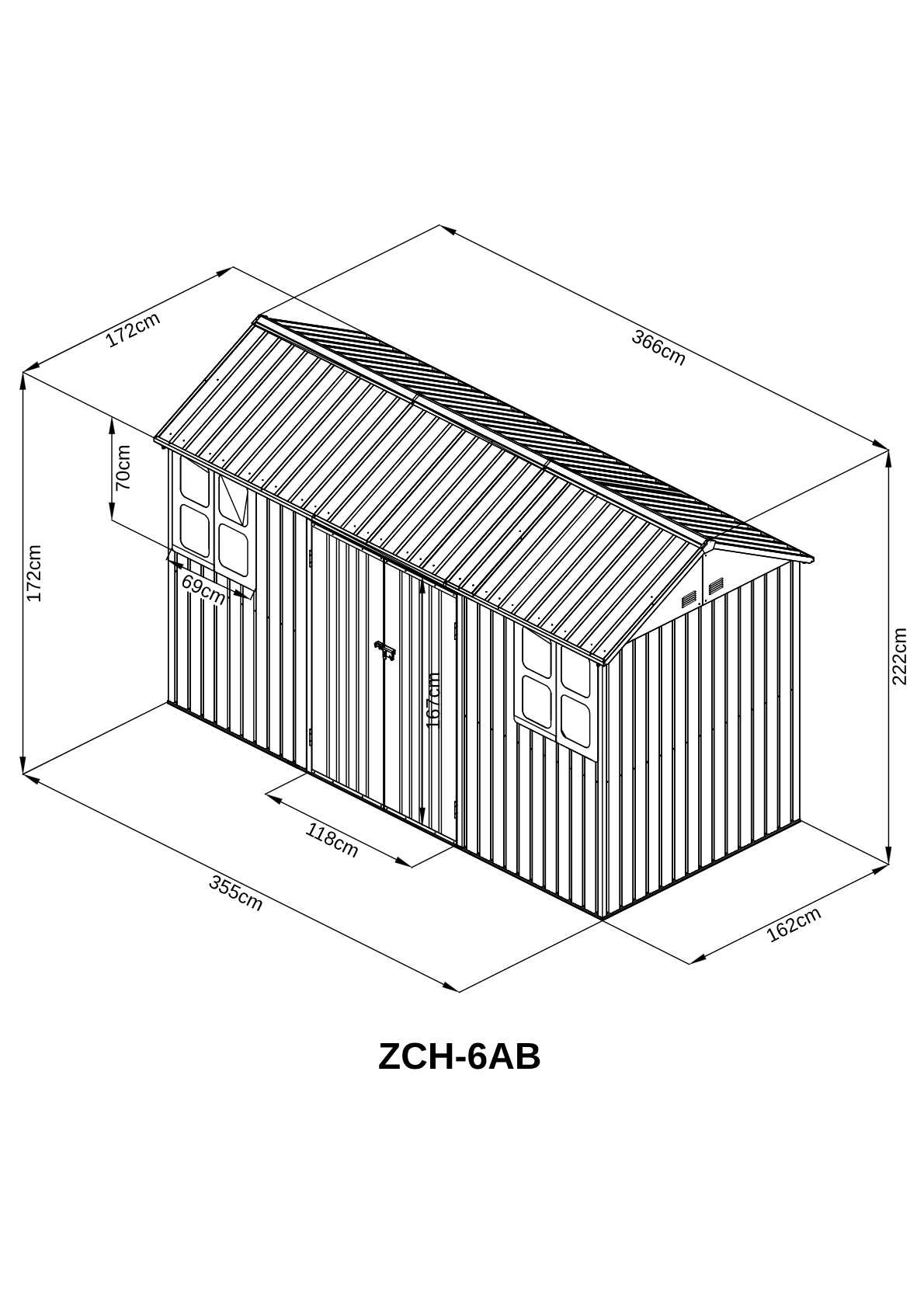 Zahradní domek BestBerg ZCH-6AB / 6,3 m² / 366 x 172 x 222 cm / šedá/bílá