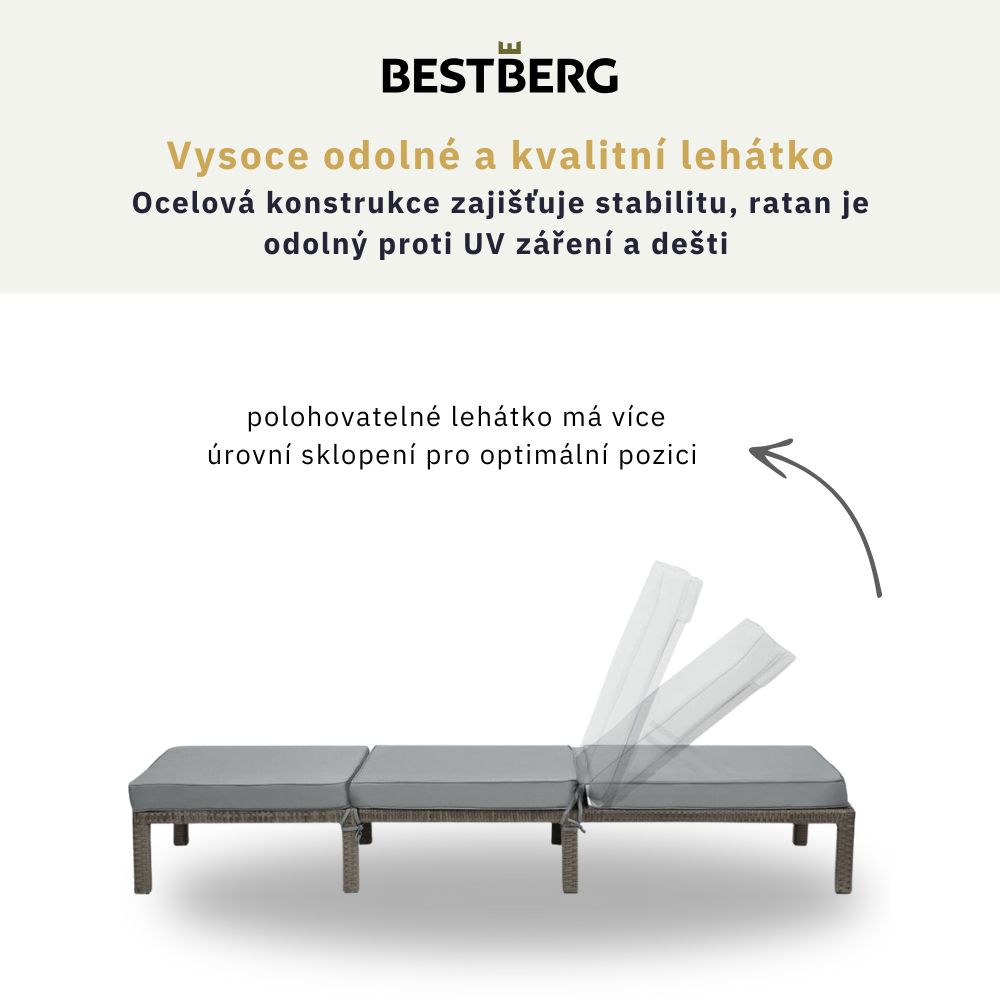 Polohovatelné ratanové lehátko BestBerg BBRF-1140BL / černá/šedá