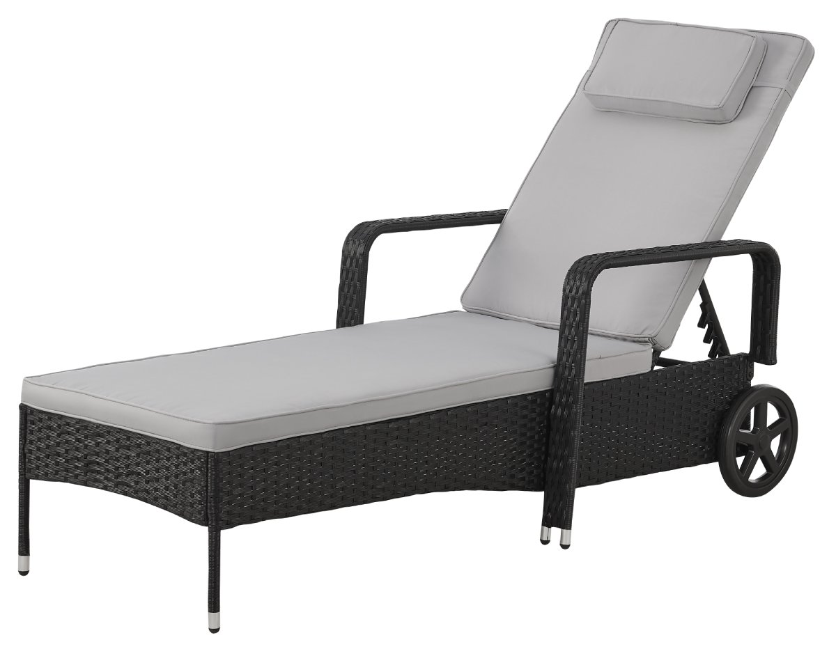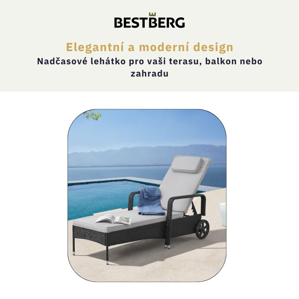 Polohovatelné ratanové lehátko BestBerg BBRF-1142BL / černá/šedá
