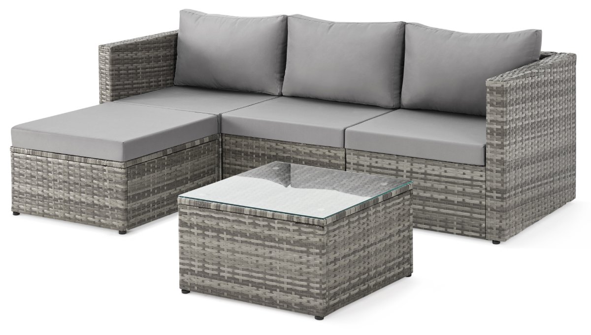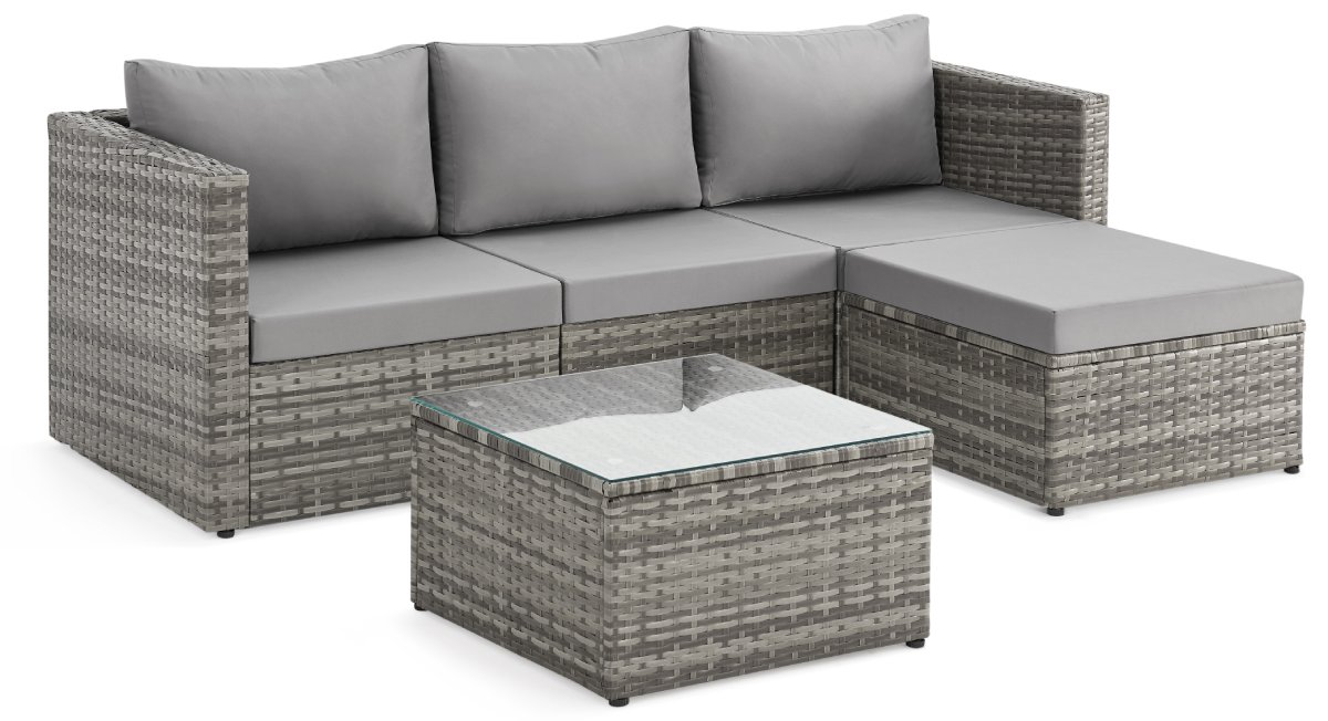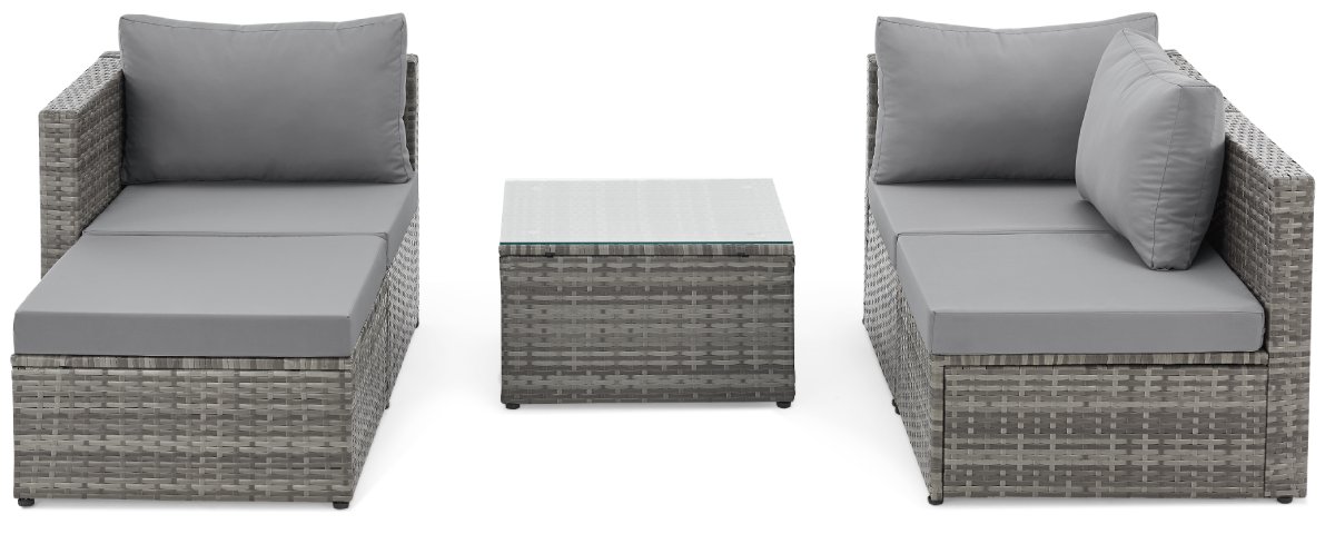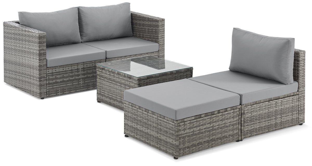Pevná konstrukce a bezúdržbový ratanSouprava má ocelový rám s nosností 120 kg na modul. Umělý ratan je odolný a nenáročný na péči.