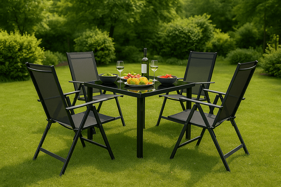 Zahradní stůl je vybaven tvrzeným sklem, které dodává setu moderní a elegantní vzhled. Tvrzené sklo je odolné a snadno se udržuje, což zajišťuje dlouhou životnost a praktické využití stolu. Na prostorný stůl můžete umístit nápoje, občerstvení nebo dekorace a vytvořit tak útulný a stylový prostor pro vaše venkovní posezení. Židle jsou ergonomicky navrženy pro maximální pohodlí. Tento design umožňuje jednoduchou údržbu a dlouhou životnost nábytku.