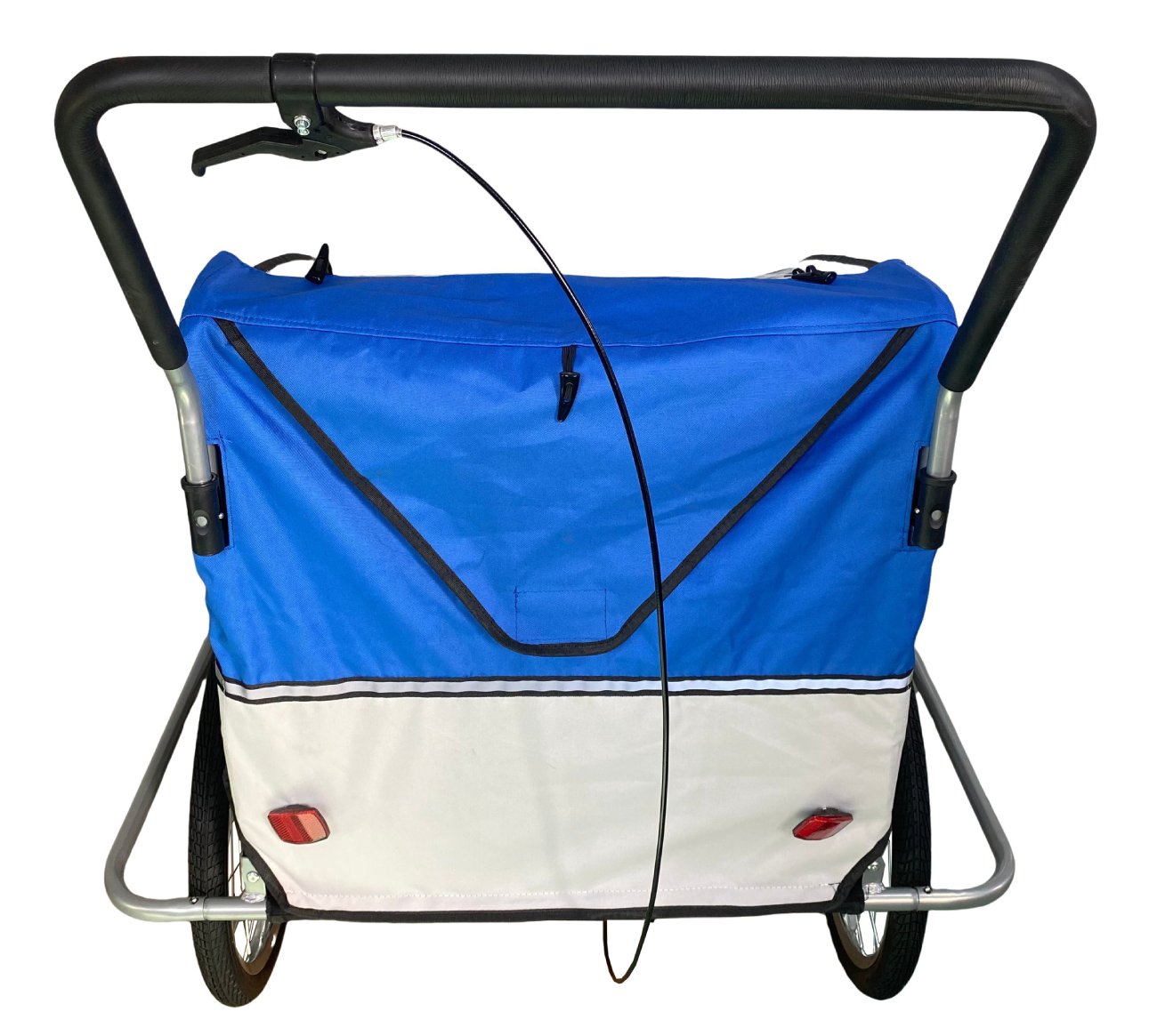 Nosnost vozíku činí až 40 kg, což zaručuje, že zvládne přepravit dvě děti i s jejich drobnými věcmi. Konstrukce vozíku je navíc vybavena dvěma robustními pneumatikami vzadu a jednou vpředu, což přispívá k jeho stabilitě i na nerovném terénu. Pro ještě větší bezpečí je vozík opatřen bezpečnostním osvětlením, které zvyšuje viditelnost za šera či během jízdy v hustším provozu, a také vlaječkou, která upozorní okolí na jeho přítomnost.