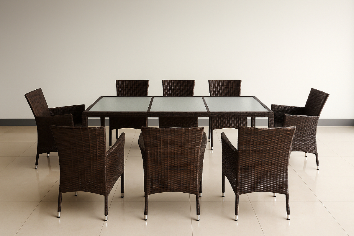 Luxusní a pohodlný set pro venkovní posezení až osmi osob. Ideální pro zahrady, terasy i altány. Polstrované židle a velký stůl z tvrzeného skla vytváří stylové zázemí pro rodinné obědy i večerní grilování.