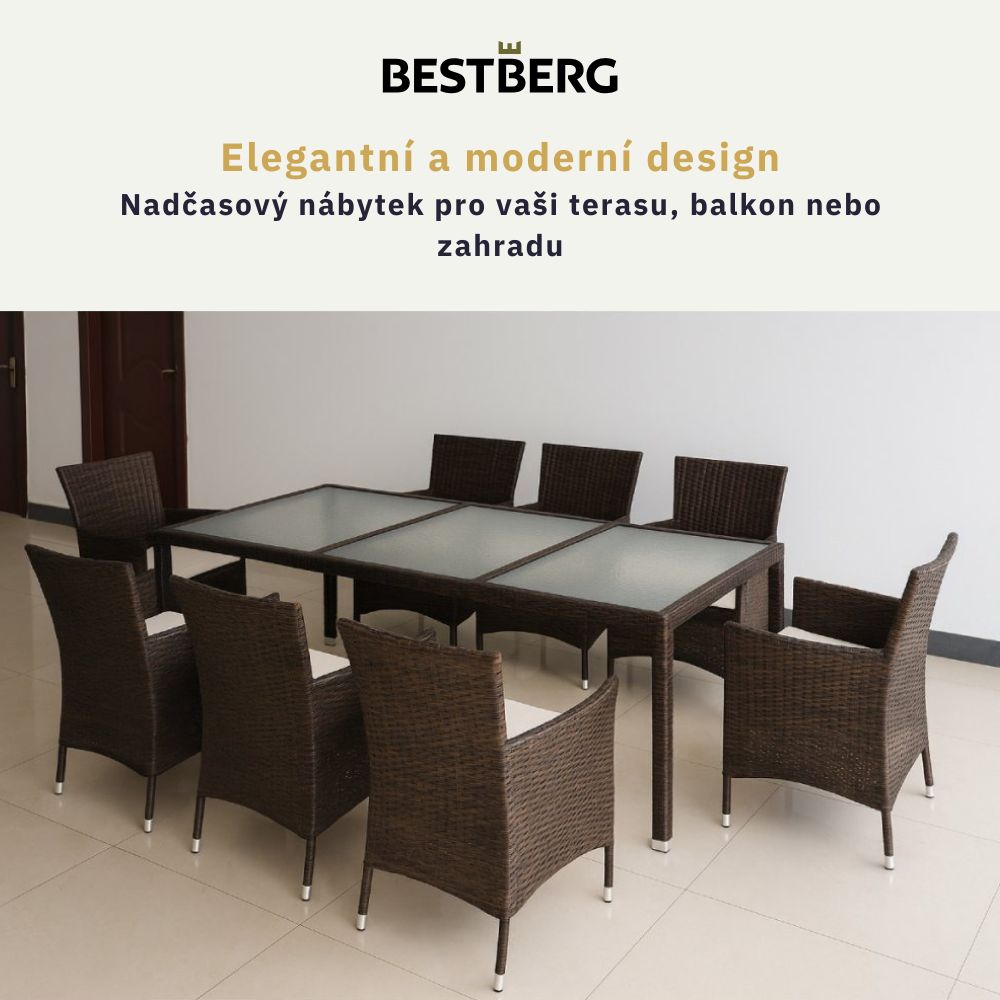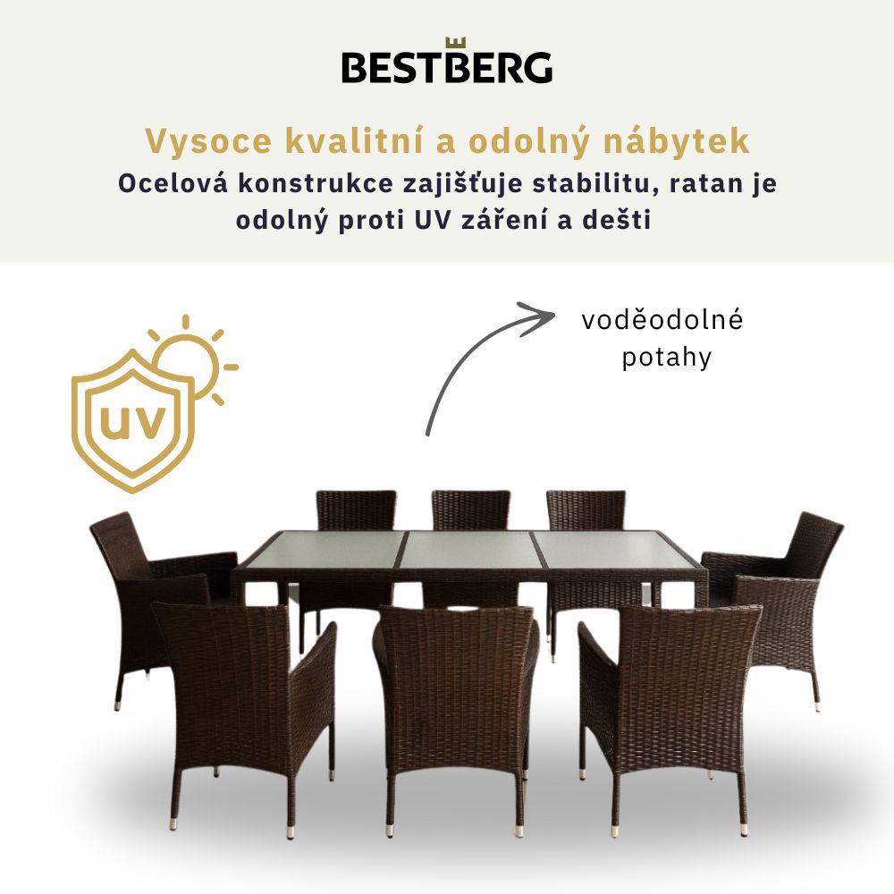 9dílný zahradní jídelní ratanový set s polstrováním BestBerg BBRF-81B / hnědá/béžová