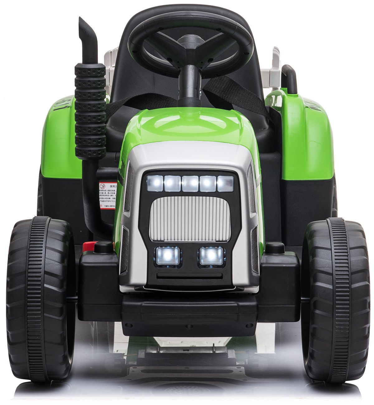 O svižný pohyb traktoru se starají dva spolehlivé motory napájené moderním olověným akumulátorem 12V s kapacitou 4,5 Ah. Díky tomu dokáže vozidlo jet rychlostí až 8 km/h, přičemž minimální rychlost 3 km/h umožňuje bezpečnou jízdu i začátečníkům. Baterie se nabíjí 8 až 12 hodin, což zaručuje dostatek energie na každodenní výpravy po zahradě či hřišti. Přední osvětlení navíc dodává autíčku příjemný pocit z jízdy,