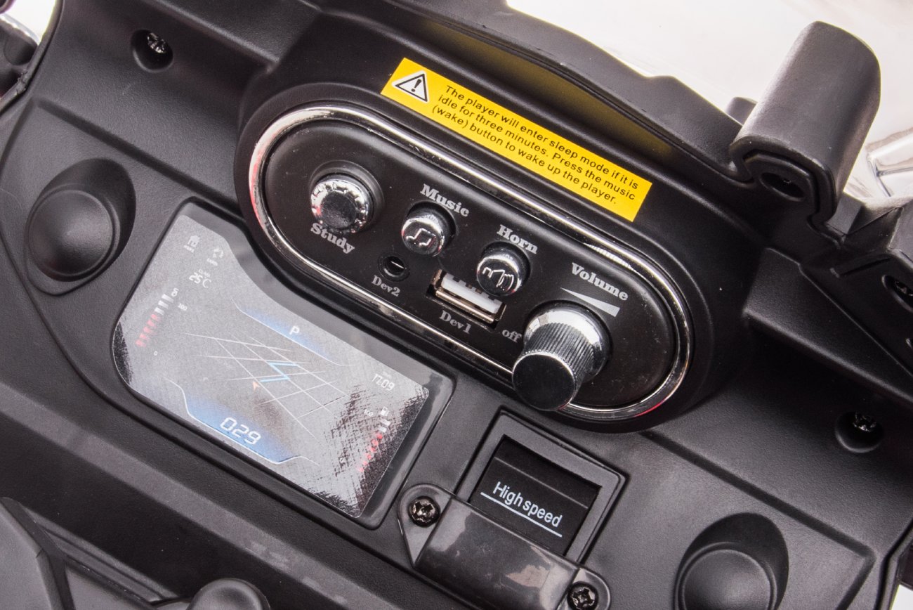 Díky EVA pěnovým kolům se vozidlo chová tiše a plynule i na nerovném povrchu, zatímco pohodlné sedadlo dodává pocit luxusu. Motorka navíc disponuje bohatou multimediální výbavou – nechybí přední osvětlení, USB a MP3 vstup, takže si děti mohou při jízdě užívat i svou oblíbenou hudbu. Tento vůz není jen hračkou, ale i plnohodnotným prostředkem pro rozvoj koordinace, fantazie a samostatnosti. Kombinace atraktivního vzhledu, moderních funkcí a důrazu na bezpečnost dělá z tohoto modelu ideální dárek pro každého malého automobilového nadšence.