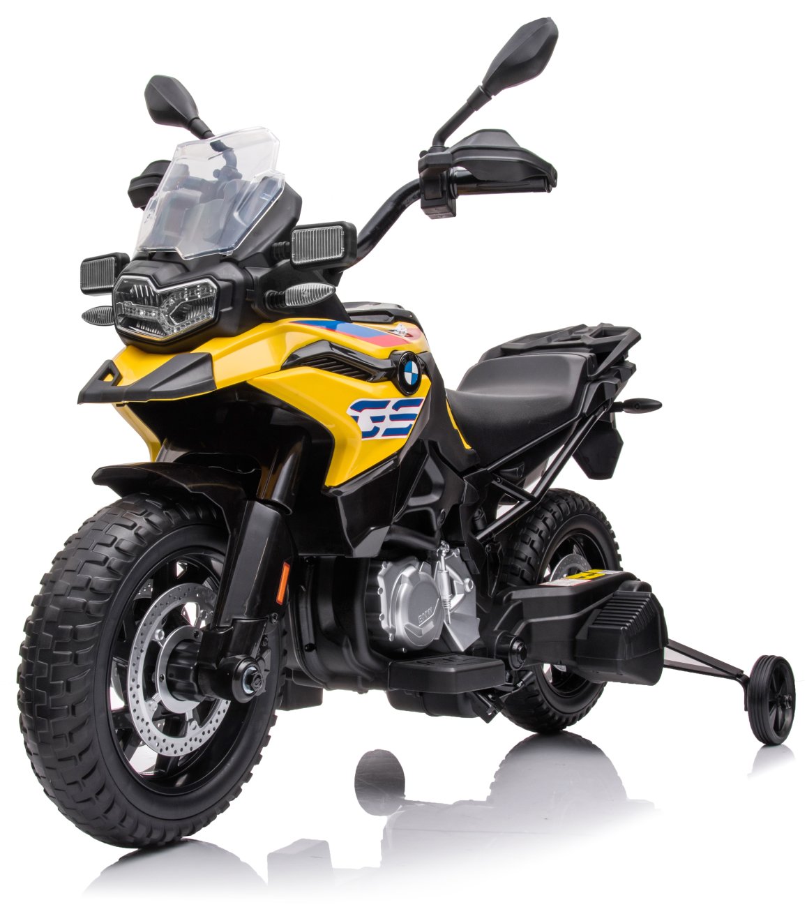 Dětská elektrická motorka BestBerg BBCC-80Y – BMW F 850 GS / nosnost 30 kg / Li-Ion baterie / žlutá
