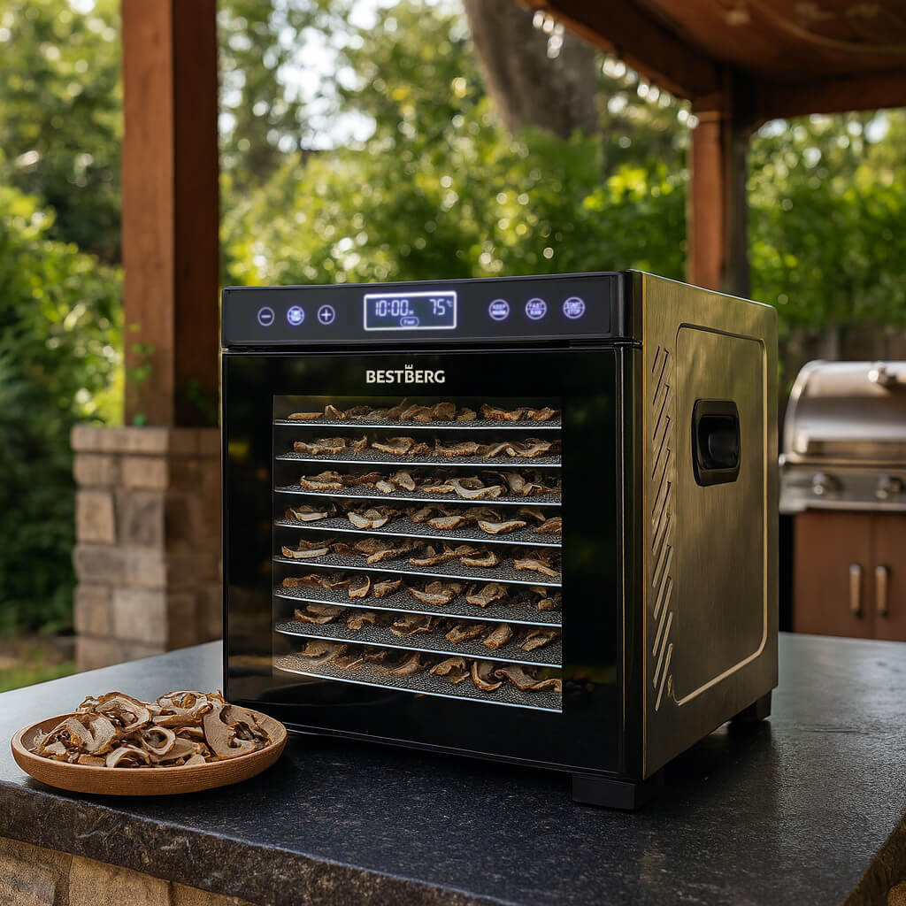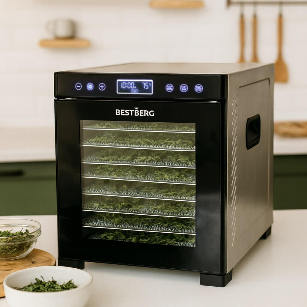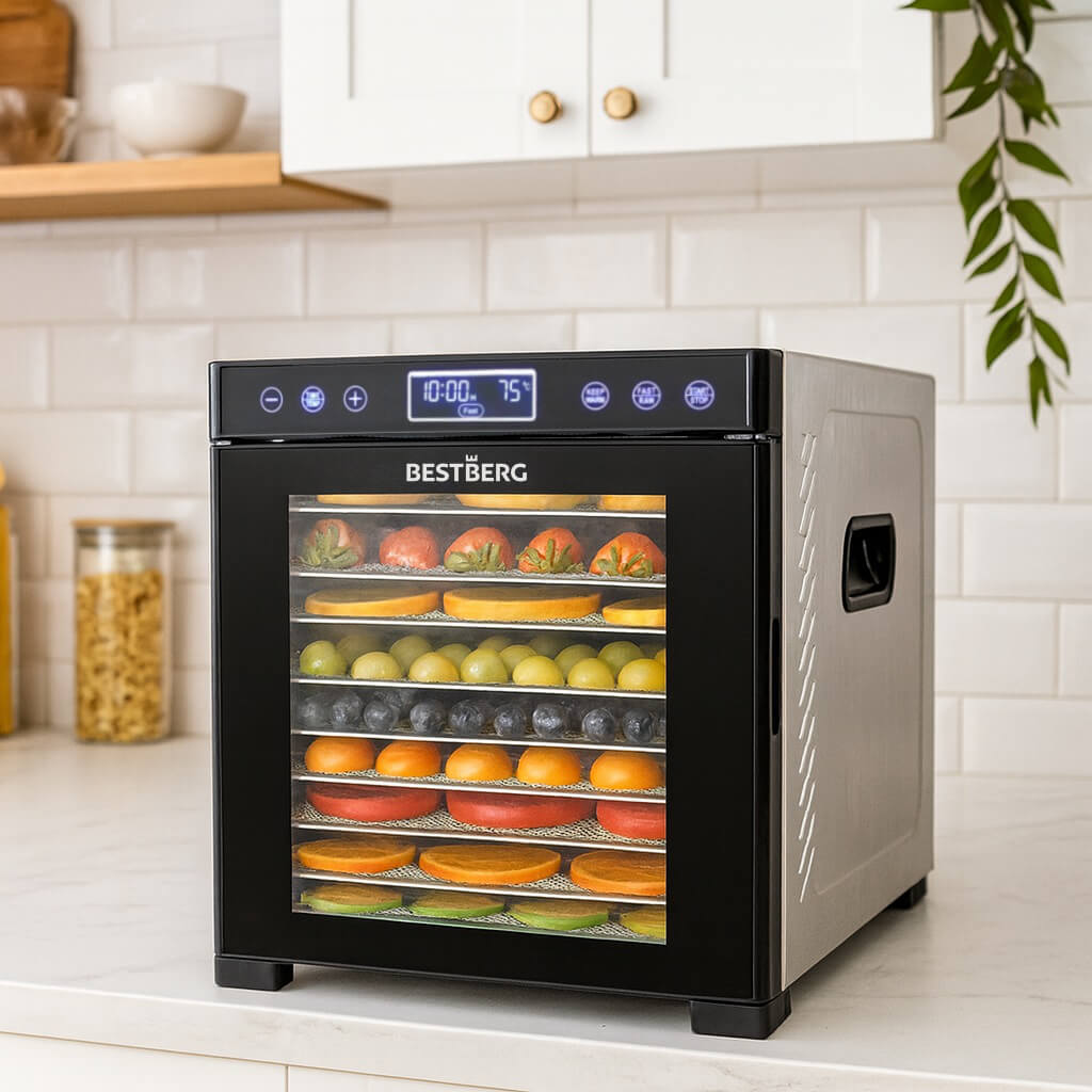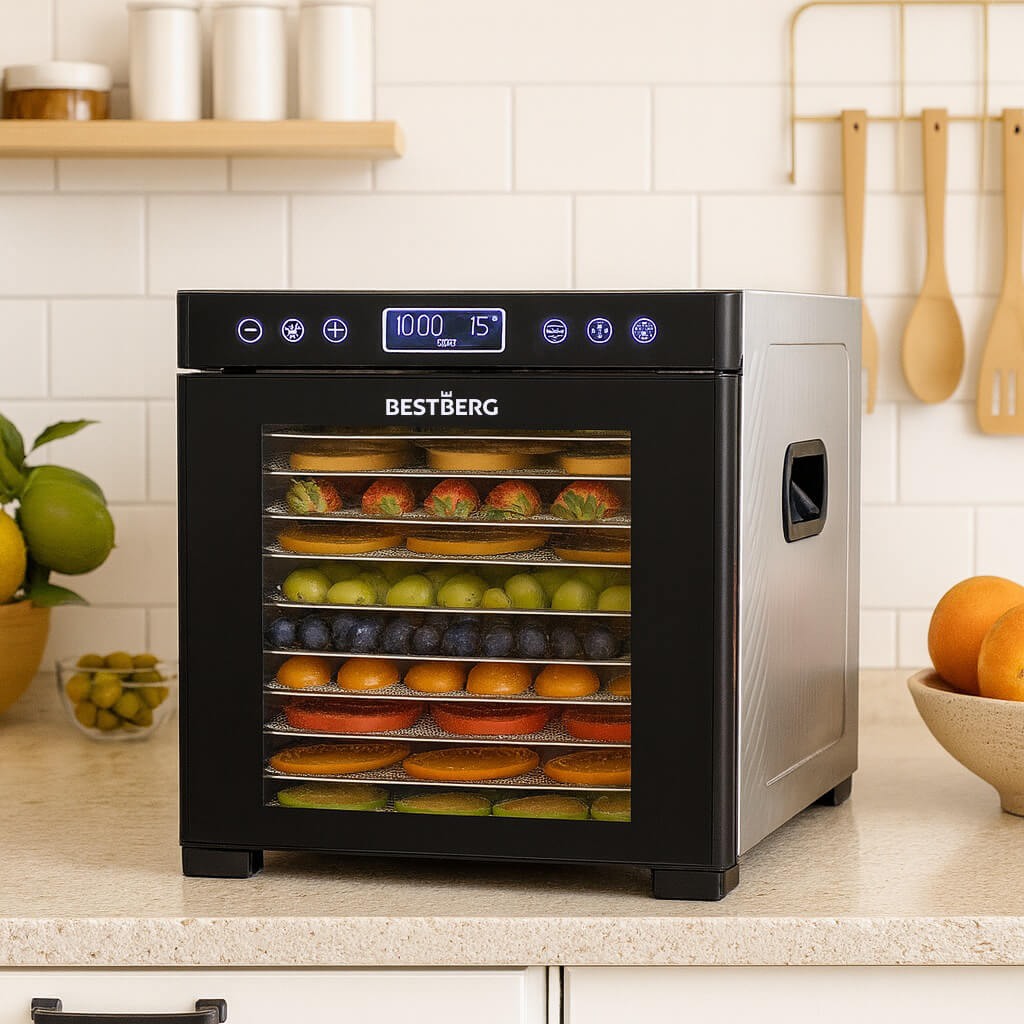 Nerezová sušička ovoce, hub a masa BestBerg BBFD-10 / 10 plátů / 650 W / černá/stříbrná