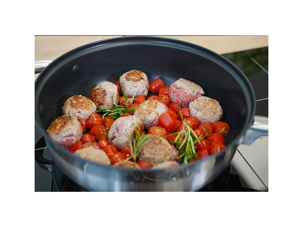 Na materiálech jsme nešetřili. I proto jsme vsadili na odolný nepřilnavý nerezový povrch. Takže ho po vaření klidně šoupněte do myčky. Navíc perfektně vede teplo, takže se rychle a rovnoměrně rozpálí.