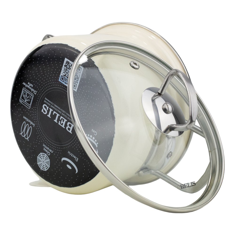 Smaltovaný hrnec se skleněnou poklicí ø 24 cm - 6.1 l - ECO-CERAMIC krémový | BELIS - 2 jakost - 41524-099DD8NE