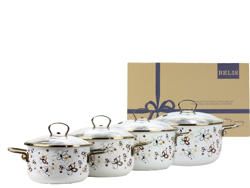BELIS Smaltovaná sada nádobí 8-dílná - PREMIUM krémový - 2 jakost - 19566-116DPHNE - 19566-116DPHNE