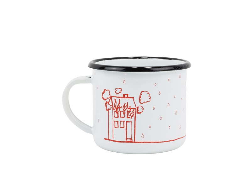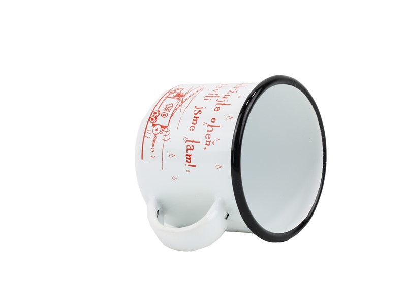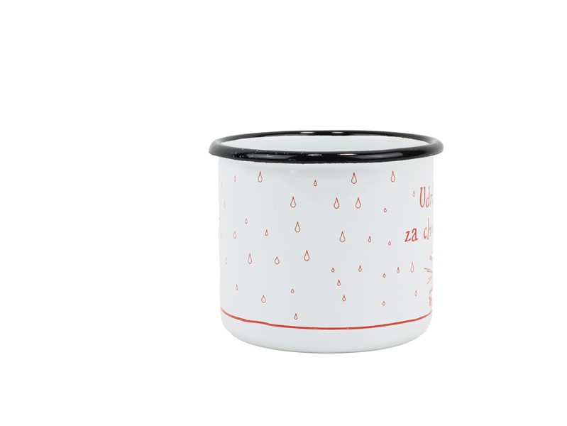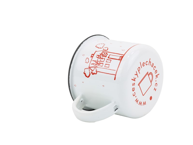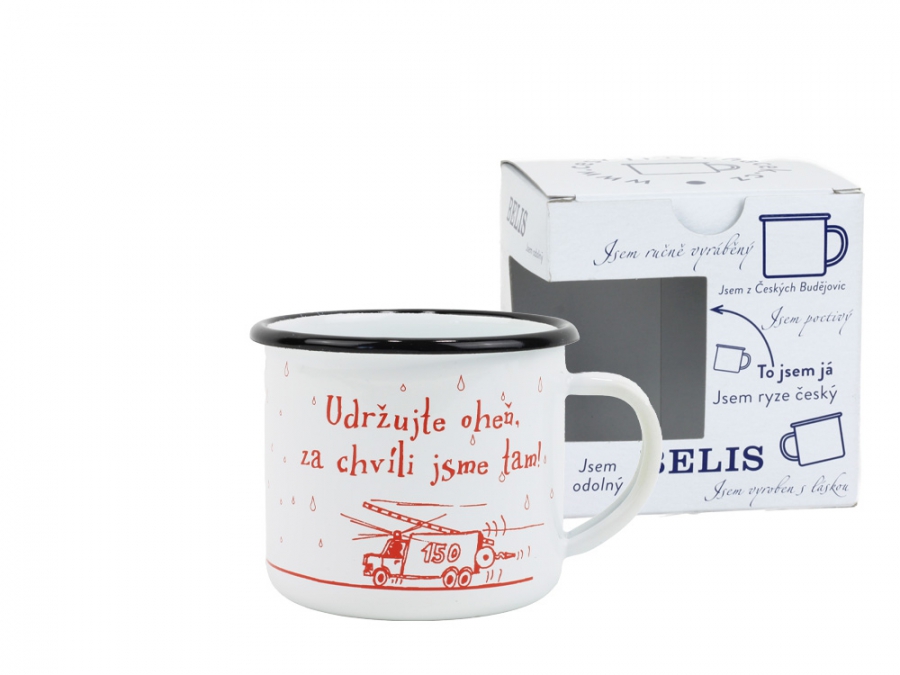 Smaltovaný hrnek ø 8 cm - 0.35 l bílý "hasiči/oheň" v krabičce - ČESKÝ PLECHÁČEK - 11008-039OEM04