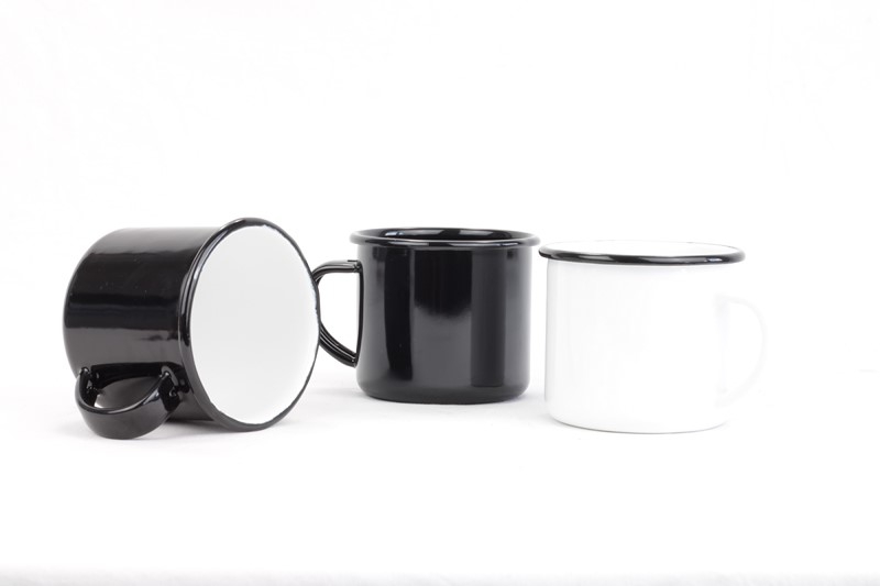 BELIS Smaltovaný hrnek ø 8 cm - 0.35 l černá/bílá - ČESKÝ PLECHÁČEK - 11008-04500004