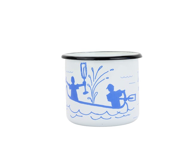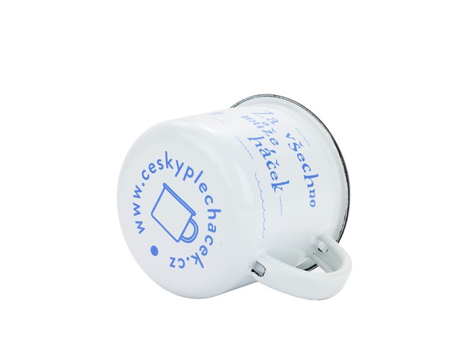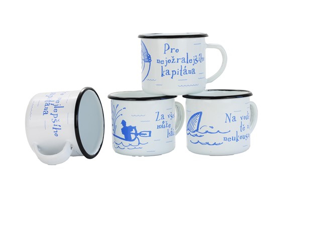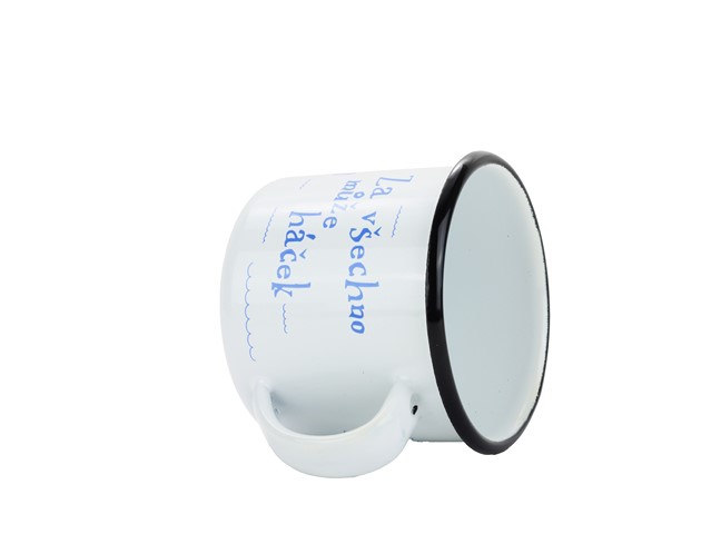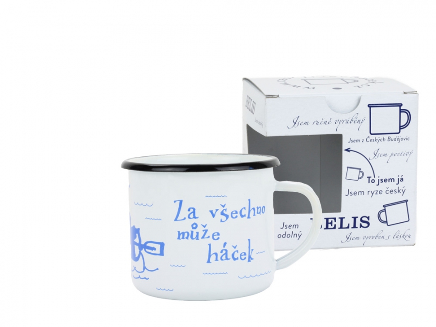 BELIS Smaltovaný hrnek ø 8 cm - 0.35 l bílý "vodák/háček" v krabičce - ČESKÝ PLECHÁČEK - 11008-039RFM04