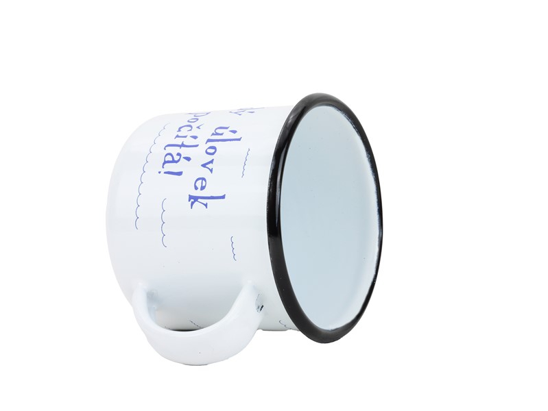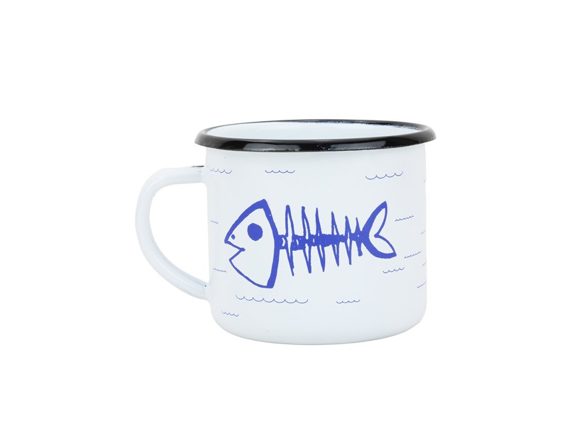 BELIS Smaltovaný hrnek ø 8 cm - 0.35 l bílý "kostra" v krabičce - ČESKÝ PLECHÁČEK - 11008-039RCM04