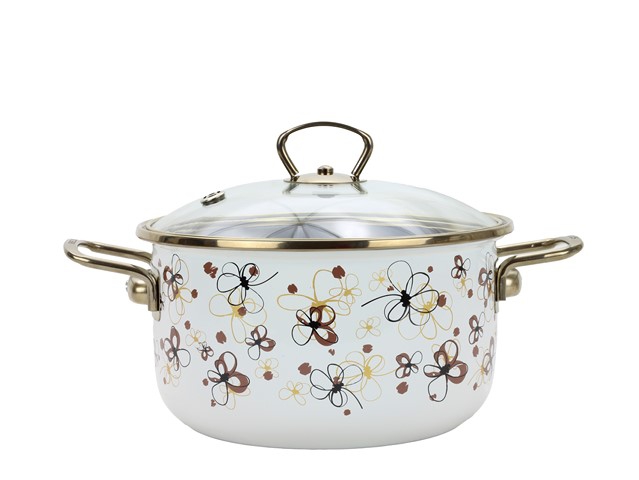 BELIS Smaltovaný hrnec se skleněnou poklicí ø 24 cm - 5.5 l - PREMIUM krémový - 71924-116DPHN3