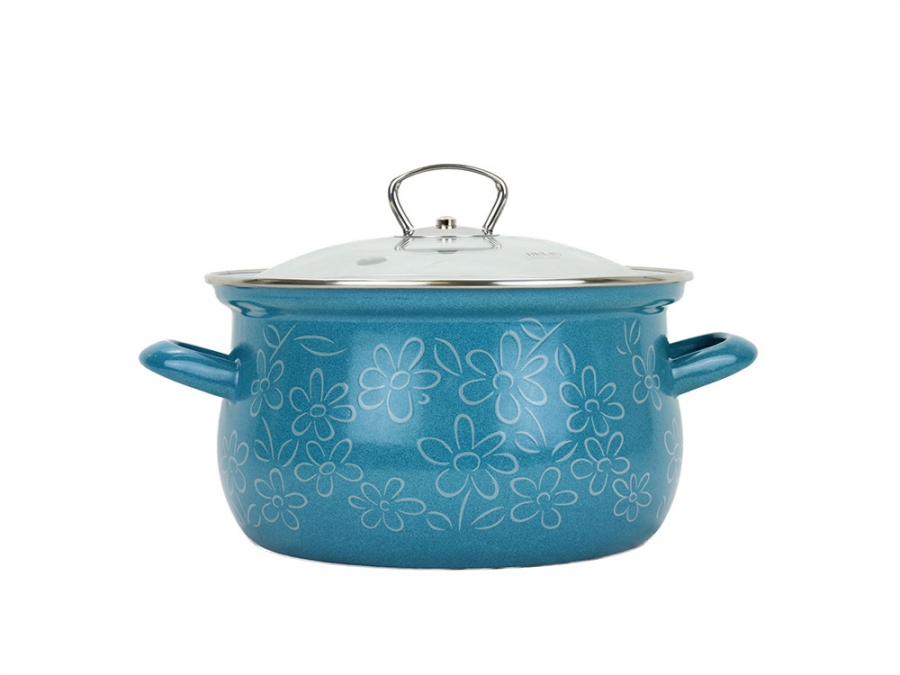 BELIS Smaltovaný hrnec se skleněnou poklicí ø 16 cm - 2 l - FLOWER - 51016-155DDF05