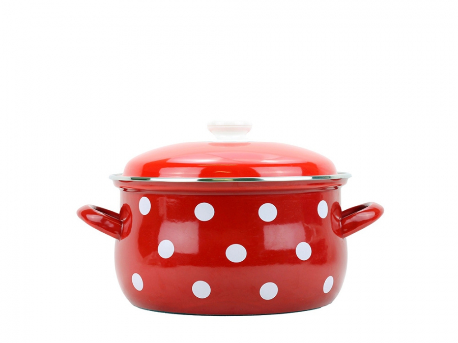 BELIS Smaltovaný hrnec s poklicí ø 20 cm - 3.6 l - PUNTÍK červený - 51220-534DACD5