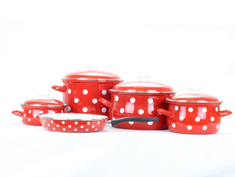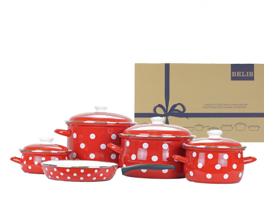 BELIS Smaltovaná sada nádobí 9-dílná - PUNTÍK červený - 19620-534DACD5