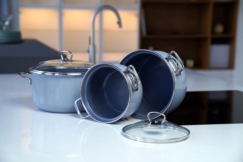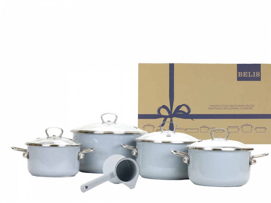 BELIS Smaltovaná sada nádobí 9-dílná - PREMIUM šedý - 19648-053000N3