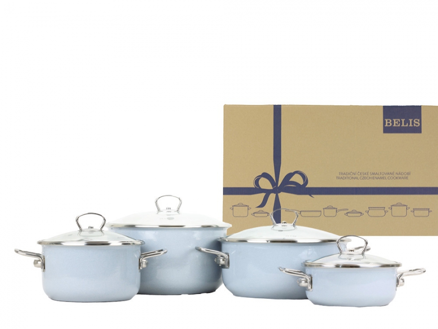 Sada smaltovaného nádobí v dárkové krabici.4-dílná sada obsahuje:Hrnec 18cm (2,2l)Hrnec 24cm (5,5l)Rendlík 16 cm (1,25l)Rendlík 24 cm (4l)Každý díl obsahuje skleněnou poklici s nerezovým kováním.Chcete obdarovat své blízké praktickým dárkem?Pak je sada smaltovaného nádobí PREMIUM šedý to pravé.Vhodná jako dárek k Vánocům, narozeninám, svatbě nebo při zařizování nového bytu. Univerzálnost, nadčasový design a mimořádná životnost. Těmito slovy lze nejlépe vystihnout novou řadu smaltovaného nádobí PREMIUM šedý, ve které jsme spojili kvalitu a eleganci.Nová řada je určena všem milovníkům chutného a zdravého jídla bez kompromisů.Produkty řady PREMIUM šedý jsou vyrobeny z velmi kvalitních materiálů.Základnu tvoří 2 mm silná ocel a speciální odolná vrstva smaltu ETC (Easy To Clean).Oproti klasickému smaltu umožňuje ETC mnohem snadnější čištění zbytků potravin z jeho povrchu. Výjimečný design nádobí podtrhuje stylové nerezové kování a skleněná poklice. Ta má navíc vylepšený otvor pro únik přebytečné páry.Precizní zpracování a použité materiály zajišťují dokonalý a rovnoměrný rozvod tepla po celé ploše nádobí.Vybraný šedý odstín dodá vaší kuchyni nádech luxusu a elegance a zpříjemní chvíle při přípravě pokrmů.Svým elegantním vzhledem a špičkovou kvalitou zpracování naše produktová novinka navazuje na již zavedenou a velmi oblíbenou řadu Premium černý.Chcete darovat nádobí řady Premium šedý svým blízkým? Nabízíme jej i jako set v luxusní dárkové krabici. Proč vybrat smaltované nádobí řady PREMIUM šedý?ideální řešení pro sklokeramický, indukční, elektrický i litinový sporák, včetně plynové i elektrické troubyzaručuje 100 % zdravotně nezávadné vařenízajišťuje rovnoměrný rozvod tepla pro dokonalou přípravu pokrmůoptimální rozvod tepla představuje energeticky úspornější vařenípři správném použití se pokrmy nepřipalují a nepřipékají (smalt má velmi nízkou přilnavost)snadno se čistí a je vhodný do myčky na nádobíjeho hladký povrch omezuje množení bakteriípři přípravě pokrmů neuvolňuje žádné chemické látkysmalt je zdravotně nezávadný a je vhodný pro děti i alergikymá velmi dlouhou životnostmá tvrdý neporézní povrch odolný proti poškrábáníchemická a barevná stálost i po dlouholetém používánídlouholetá garance kvalitymá moderní a nadčasový vzhledvýrobek je 100% recyklovatelný Jak správně pečovat o smaltované nádobí si můžete přečíst na našem webu www.smaltovanenadobibelis.cz/advisor/pece-o-smaltovane-nadobi