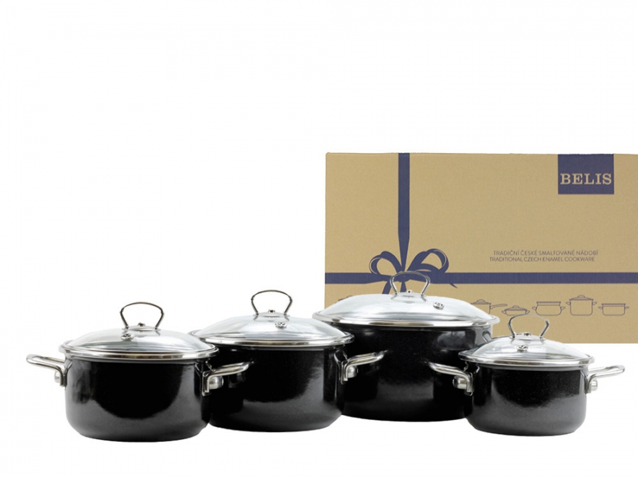BELIS Smaltovaná sada nádobí 8-dílná - PREMIUM černý - 19618-004000N5