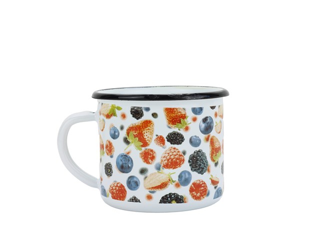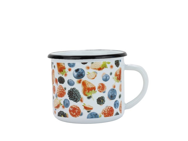 BELIS Smaltovaný hrnek ø 8 cm - 0.35 l bílý "lesní ovoce" - 11008-039DDH04