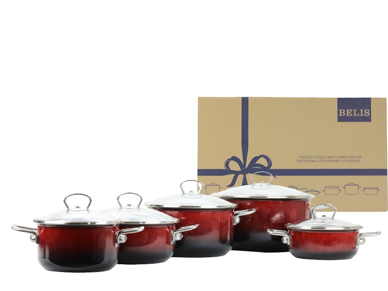 BELIS Smaltovaná sada nádobí 10-dílná - PREMIUM OMBRÉ červený - 19681-033A0DN3