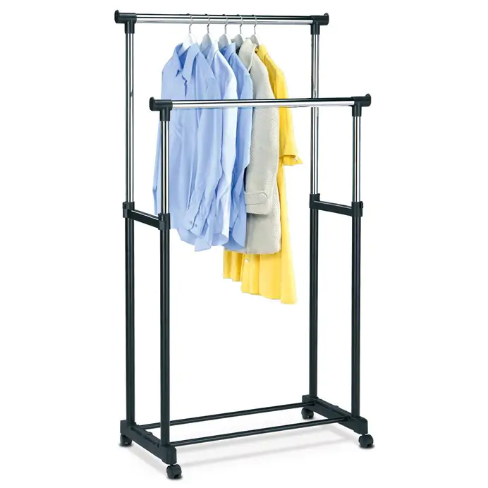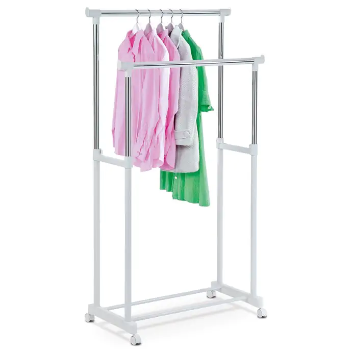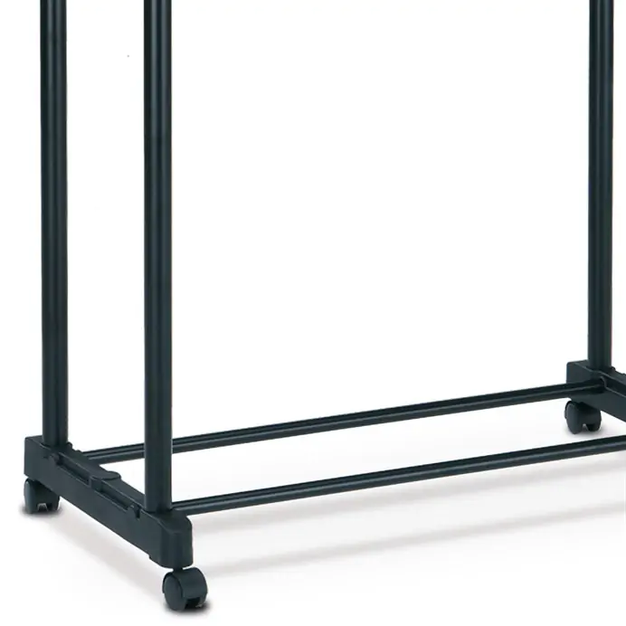 Provedení: Kombinace kovové základny v bílé nebo v černé barvě s chromovými držáky. Odkládací věšák na šaty moderního designu je vhodný do šaten a všech odkládacích prostorů. Tento stojan na kolečkách se uplatní jako držák ramínek na šaty v domácnosti i ve všech veřejných prostorách. Díky kolečkům je mobilní, lze s ním tedy bez problémů manipulovat.