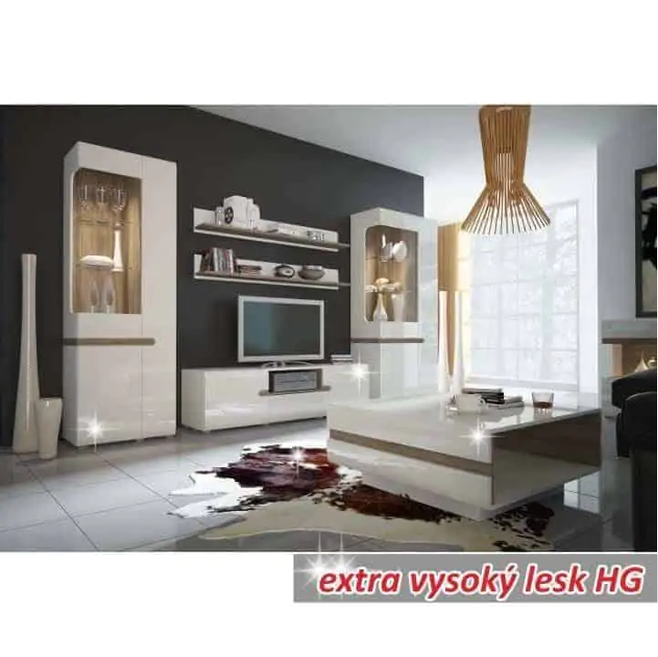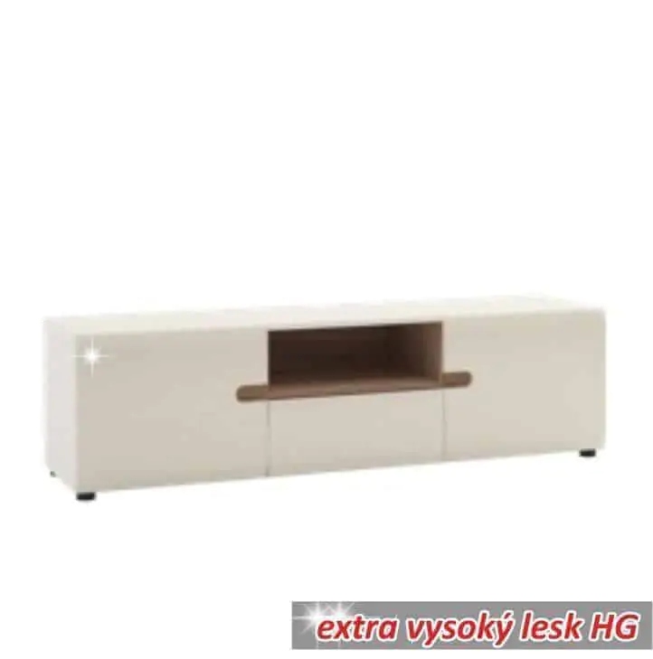 Provedení: Moderní televizní stolek z programu Lynatet je vhodný na zařízení obývacích pokojů či ložnic. Televizní stolek v bílé barvě se vyznačuje moderními zaoblenými hranami a elegantními doplňky v tmavém dubu sonoma. Stolek obsahuje dvoje dvířka, jednu zásuvku a prostor pro DVD přehrávač. Korpus je vyroben z laminované dřevotřísky odolné vůči poškrábání a vlhkosti, přední plochy jsou z MDF ve vysokém lesku. Dodáváno v demontu.
